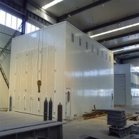 ◦	全下冲式喷漆房:空气从天棚进入后,通过地坑或地下室排放。在喷漆过程中,能营造出极为洁净的环境,喷漆质量上乘,但建设成本高,对场地条件也有一定要求,常用于对喷漆质量要求极高的高端作业。